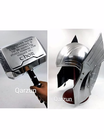 Set of Power Thor Hammer Thor Mjolnir and Medieval Thor Helmet, Mild Steel Ragnarok Movie Helmet with display stand by Ascent India is a reliable choice for international buyers seeking high-quality helmets & gloves. Designed for utility and appeal, this product ensures durability, aesthetic value, and export-grade specifications for bulk or retail sourcing.